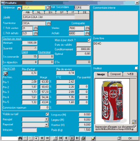 On left, the various prices in progress in the products At the right, the history of the sales for the active customer in the document and for the active product. Down field which allows the encoding of a price VAT-included.